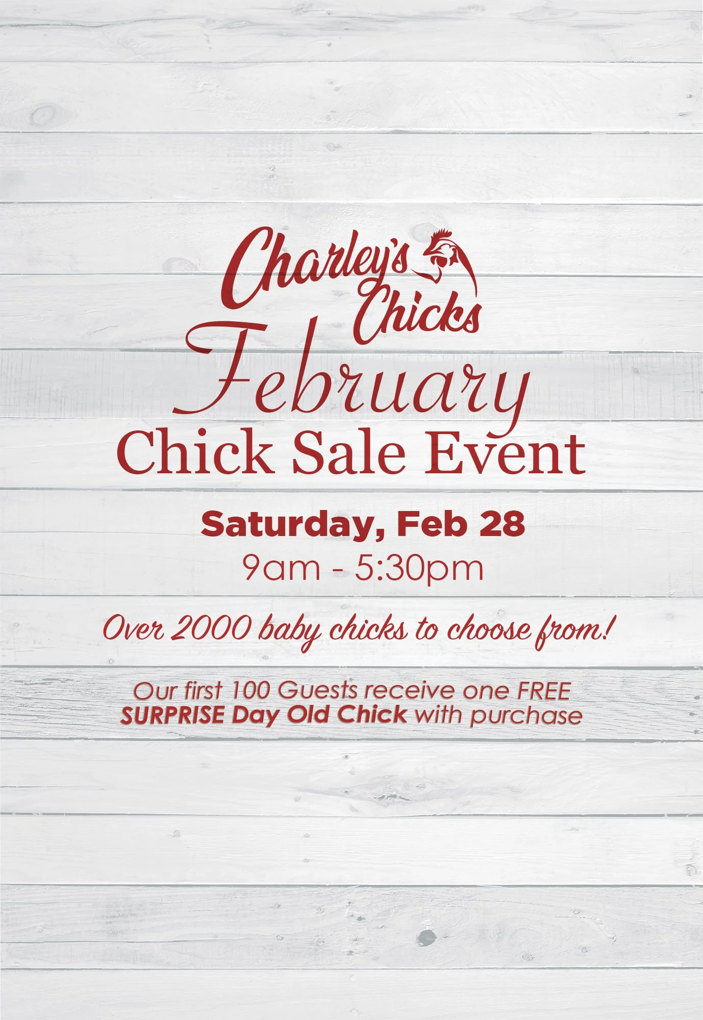 *Charley’s Chicks is open by appointment only Tuesday through Friday. Please Book a Farm Visit here
