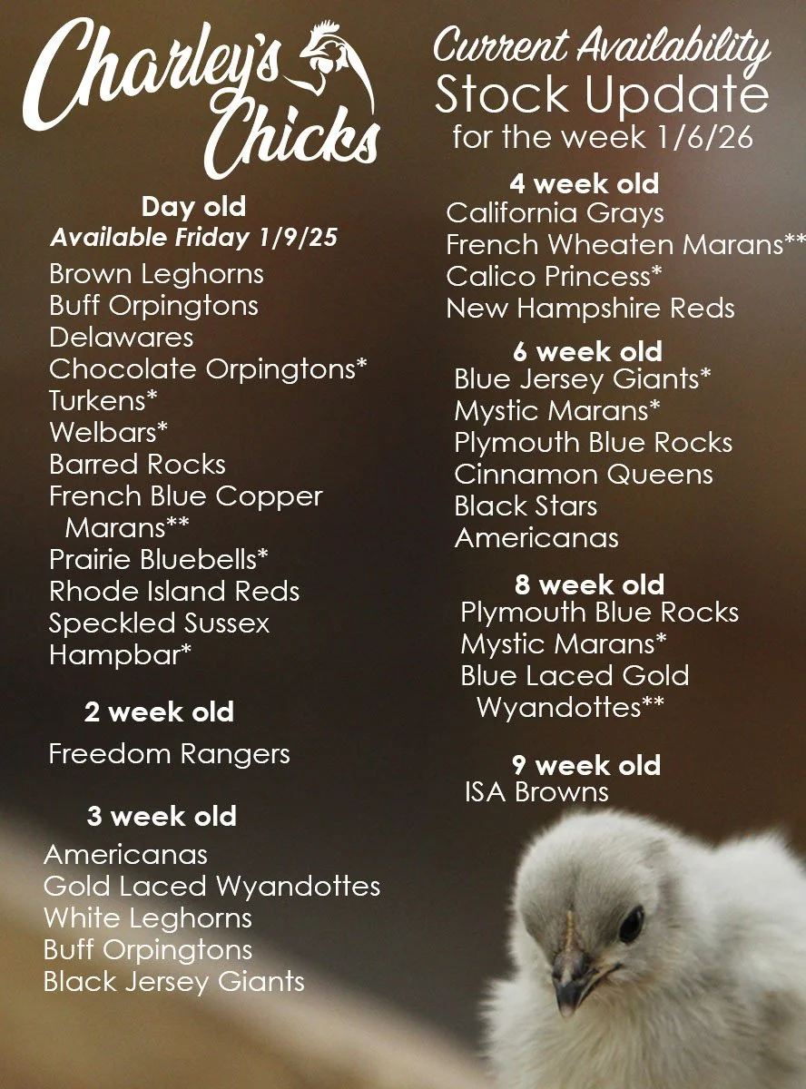 “Charley’s is an excellent source for chicks and has an awesome selection to choose from. They are healthy and maintained in a super clean environment.”